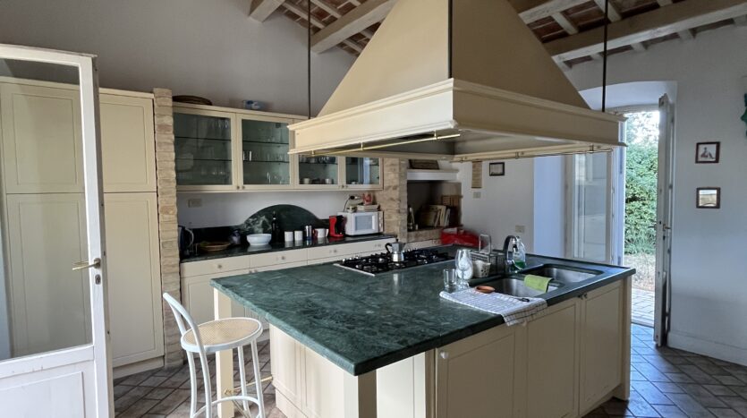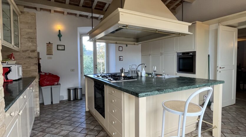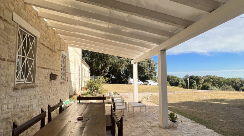 fantastic renovated farmhouse located on Monte Conero on the south/south-east side. The house covers an area of approx. 400 with surrounding green area and swimming pool, all part of the same wooded property of a total of h. 60. It is easy to reach the property by car along mainly an easy paved road and then have parking spaces inside the garden. The House; Ground floor – large living room with seating and fireplace, large kitchen room equipped with quality custom-made furniture, large living room, 2 double bedrooms and 2 bathrooms. First floor – master bedroom with en suite bathroom, 2 double bedrooms and 2 bathrooms.