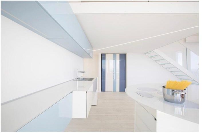 singular panoramic penthouse within the ancient walls of the town of Sirolo. Located in the noble palazzo “Bianchelli” from the end of the 19th century, the apartment has been completely renovated with modern techniques, using quality materials. With the lift service you reach the apartment on the top floor consisting of;