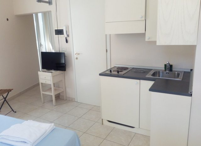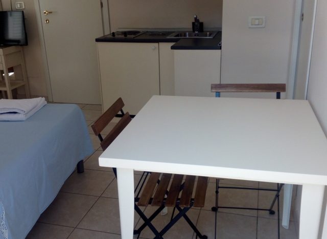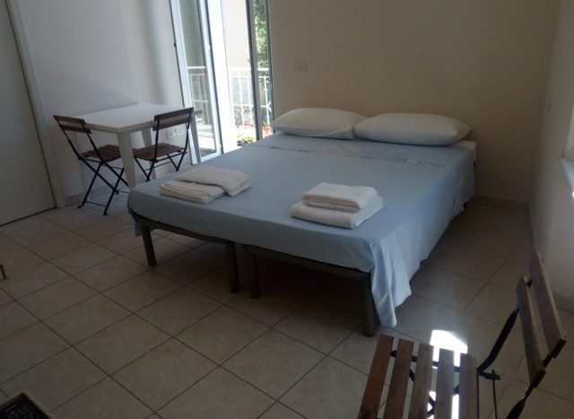 The maisonette consists of; large room with double bed + single bed (pax n.3), kitchenette with induction burners, dining table with n.3 chairs, bathroom with shower cabin, n.2 terraces with sea view.