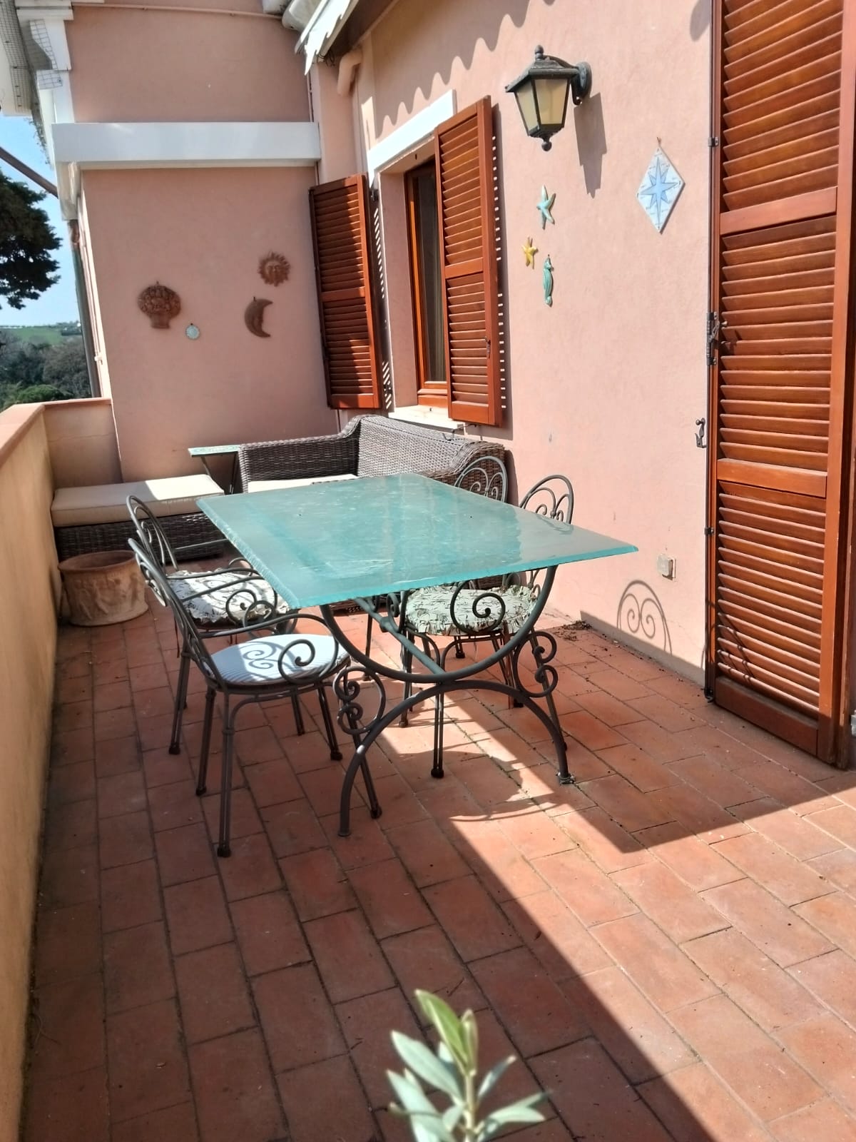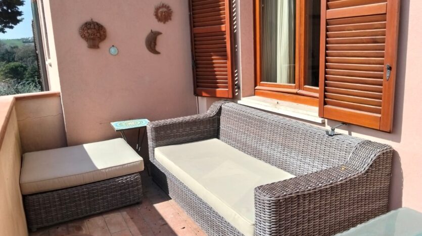 proposta di locazione estiva appartamento a Sirolo via san Francesco. Posto al piano primo ed ultimo di piccolo edificio copre una superficie di c.ca mq. 70 con ampio terrazzo abitabile dove pranzare, sedersi nel comodo divano e leggere un libro. L’abitazione si compone di; ingresso nella stanza soggiorno con seduta divano e zona pranzo, porta finestra che immette nel terrazzo, cucinotto, camera da letto con n 2 posti ed armadio, angolo notte che divide la camera maggiore con guardaroba ed il bagno con cabina. Attrezzatura; frigo/freezer, lavatrice, lavastoviglie, tv color. Per finire l’importante ed ampio posto auto nel garage comune ed una cantinetta ripostiglio. Siamo a poca distanza dalla piazza del paese di Numana (mt.200), comodo a tuti i servizi, mt 500 dalla spiaggia di Numana alta (spiaggiola) raggiungibile con frequente e gratuito servizio di bus navetta.