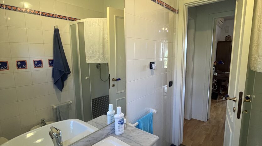 Scopri questo incantevole appartamento situato in una zona silenziosa e verde, perfetto per chi cerca tranquillità e bellezza. La struttura, caratterizzata da un elegante stile mediterraneo con tinteggio “bucciato” bianco, si trova al primo e ultimo piano, accessibile tramite una comoda scala esterna. Con un posto auto coperto adiacente, la praticità è garantita.