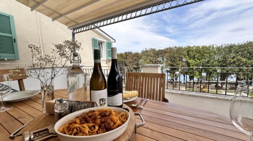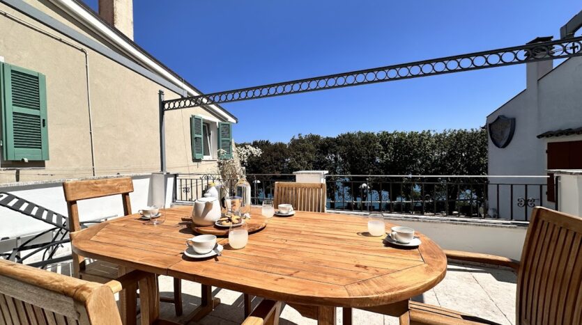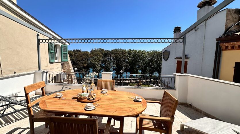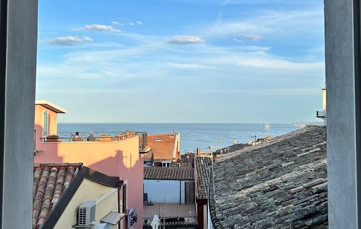 Goditi viste mozzafiato sul mare e sul Monte Conero dall’ampia terrazza panoramica, con tenda da sole completamente retrattile ideale per pranzi e cene all’aperto. L’appartamento è posto all’ultimo piano di uno storico palazzo del XVI secolo, situato nel corso principale del centro storico di Sirolo.