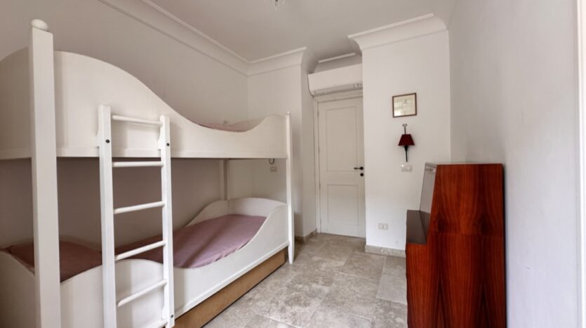 All’interno troverai tre ampie camere da letto che possono ospitare due persone ciascuna (la stanza con il letto a castello offre a un letto estraibile per la terza persona), una cucina completamente attrezzata con lavastoviglie, forno a microonde e frigorifero/congelatore, un ampio soggiorno con TV e due bagni, uno con doccia e l’atro con vasca da bagno. Tutti gli elementi essenziali, come lavatrice, asciugacapelli e aria condizionata, sono inclusi in perfette condizioni.