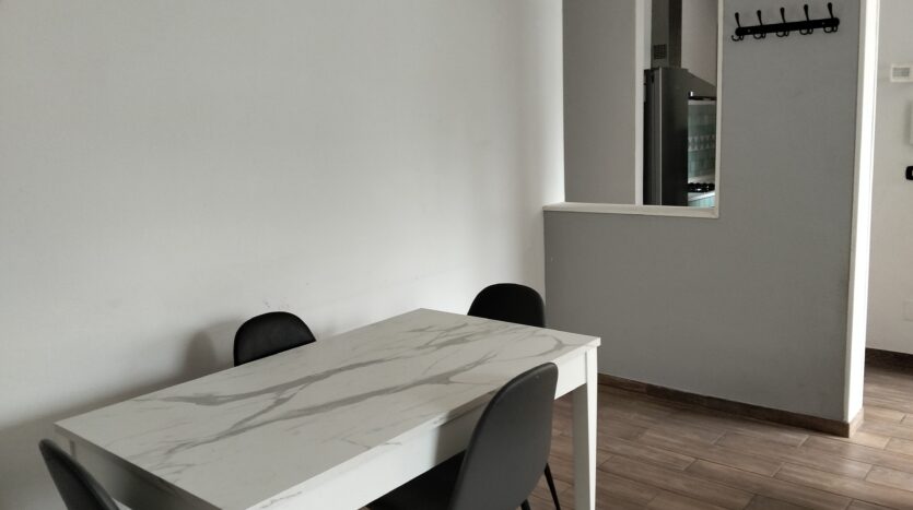 ingresso nella stanza giorno con sedute e zona pranzo, cucina bene organizzata con molteplici accessori, nel reparto notte sono presenti n 2 camere da letto ed il bagno con cabina doccia.
