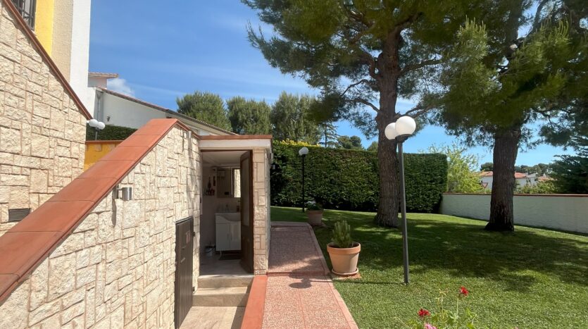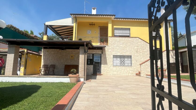 Vendiamo villa singola al villaggio Taunus di Numana circondata da mq. 700 di corte a giardino e pavimentata. L’immobile risale agli anni 70 e mantenuto egregiamente con continui interventi eseguiti negli anni agli interni ed esterni. Superficie complessiva di mq. 170 composta di due unità; nel piano terra è presente un appartamento di mq. 65 c.ca, con n. 2 camere letto, bagno, stanza giorno ed angolo cucina. piano primo servito da scala esterna composto di stanza giorno, cucina, n due camere da letto di regolari dimensioni, cameretta, bagno, terrazzo panoramico. Box auto e cantina. La casa non necessita di interventi, pronta da abitare.