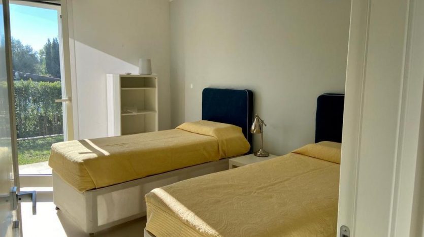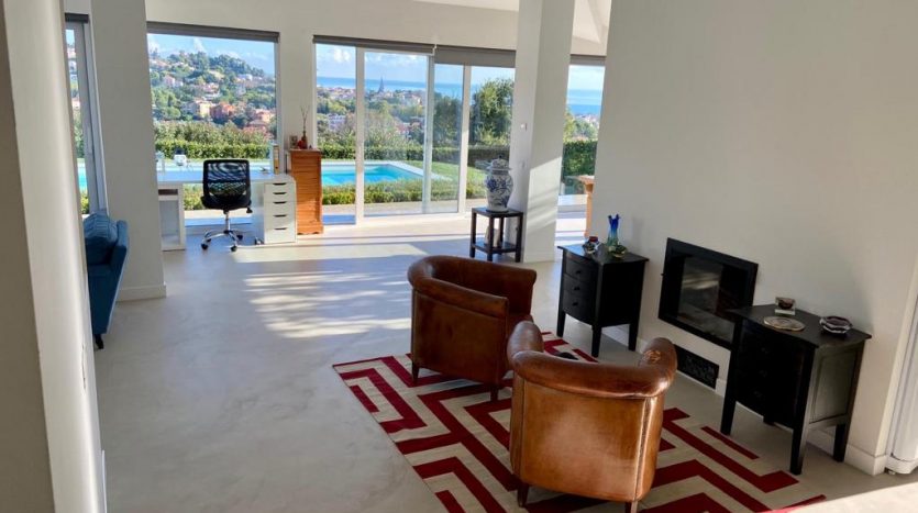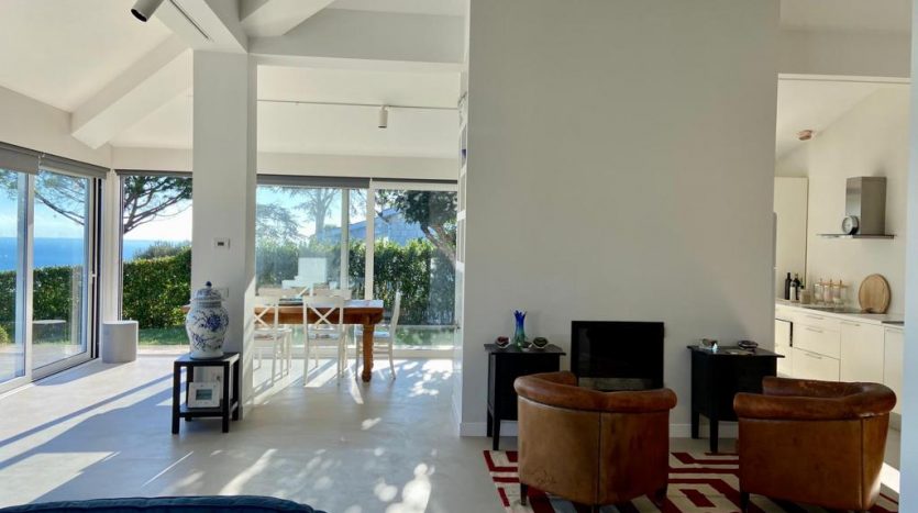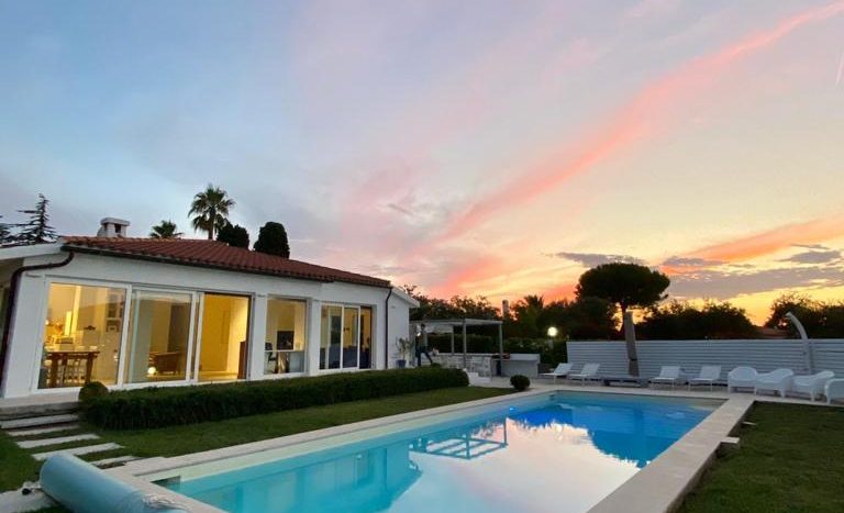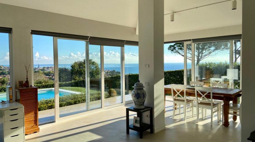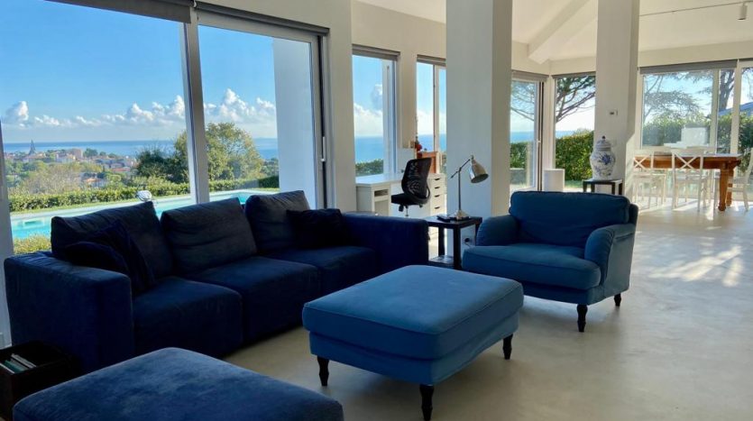 singolare villa di recente costruzione sita al villaggio Taunus di Numana. Posta in posizione favorevole all’ampia veduta sul mare, monte conero, paesi di Numana e Sirolo; si sviluppa in unico piano terreno con ampie vetrate che si affacciano verso mare e piscina. La casa copre una superficie di mq. 150 composta di; gran soggiorno con comode sedute e tv color, zona pranzo ed angolo cucina bene attrezzato con fuochi ad induzione, lavastoviglie, frigo/freezer e tanti altri accessori utili da cucina; reparto notte con n 3 camere letto e n 3 bagni. Gli interni sono di ottima qualità come anche il mobilio. Impianto di aria condizionata, posti auto interni il giardino di proprietà. Piccolo centro commerciale a mt. 500. Centro sportivo a mt. 1000. E’ presente per l’intera stagione un frequente servizio gratuito di bus navetta per raggiungere le spiagge e centro paese.